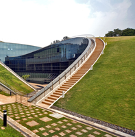 Pianova akademija znanosti v San Franciscu je vzor trajnostno zasnovane arhitekture, medtem ko je Univerza za umetnost, oblikovanje in nove medije v Singapuru (2008) primer nekonvencionalno oblikovane javne stavbe z zeleno streho. Novo univerzitetno poslopje stoji na območju večjega parka, ki naj bi ostal po urbanističnem načrtu nedotaknjen. Arhitekti iz biroja CGP Corporation so upoštevali urbanistične zahteve in ustvarili stavbni kompleks, ki je zlit z naravnim okoljem. Polkrožno oblikovana stavbna krila se ob svojem izteku dotikajo zemlje in se skoraj neopazno prelijejo v pokrajino, kot bi bila njen del. Stavba sledi smernicam transparentne arhitekture, ki briše meje med notranjim in zunanjim prostorom ter zmanjšuje občutek zaprtosti stavbe. Tudi notranjost univerze je zasnovana na dinamičnem prepletanju predavalnic, ateljejev in širokih hodnikov, ki se vzpenjajo proti ozelenjeni strehi, nekakšni kroni celotne stavbe, kamor vodijo tudi sprehajalne poti z osrednjega dvorišča.